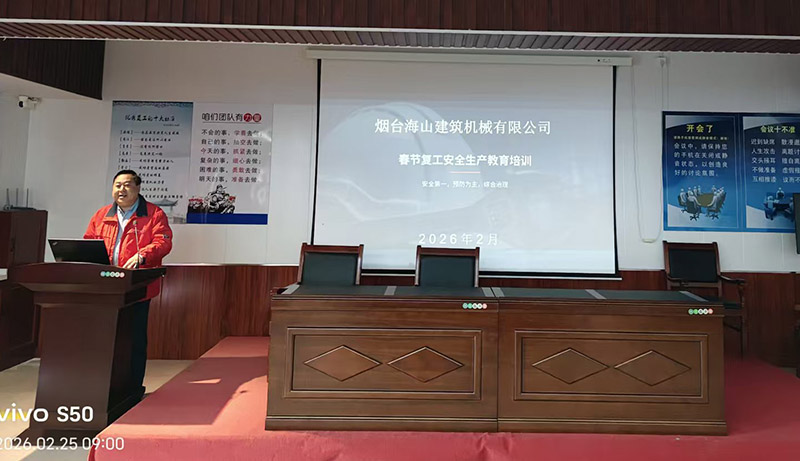 2026年2月25日上午,煙臺(tái)海山建筑機(jī)械有限公司在會(huì)議室組織召開春節(jié)復(fù)工復(fù)產(chǎn)安全生產(chǎn)教育培訓(xùn)會(huì),會(huì)議由總經(jīng)理劉總主持,分管安全工作的張部長主講,公司全體員工參加培訓(xùn),切實(shí)上好“開工第一課”,把好“安全第一關(guān)”。
